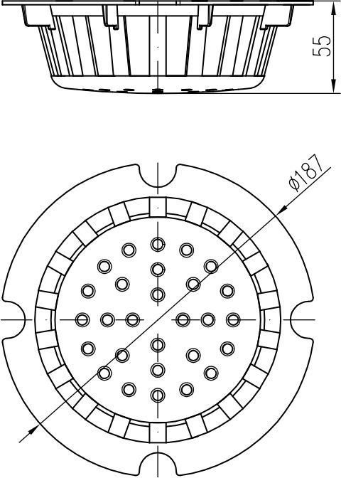 Bottom street drain, outlet D160 dry flap, plastic grid SUN, safety screws 328 Pz