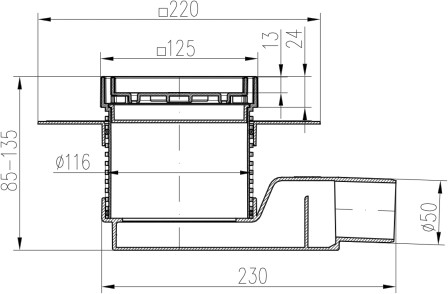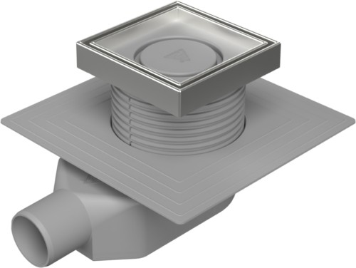 Floor drain-low with side outlet D50, collar, stainless steel frame, grid CERAMICS