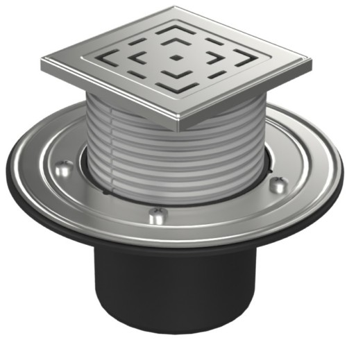 Floor drain with bottom outlet D110, stainless steel flange, grid LABYRINTH