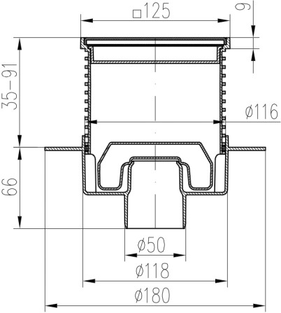Floor drain with bottom outlet D50, NEPTUN, collar, stainless steel grid LABYRINTH