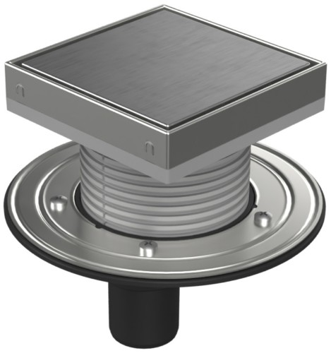 Floor drain with bottom outlet D50, stainless steel flange, frame, grid STEEL