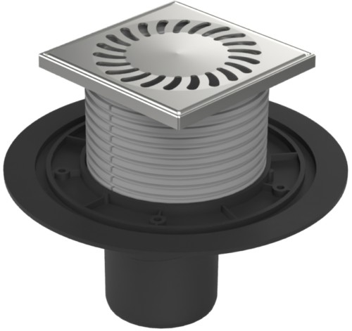 Floor drain with bottom outlet D75, stainless steel frame, grid SUN