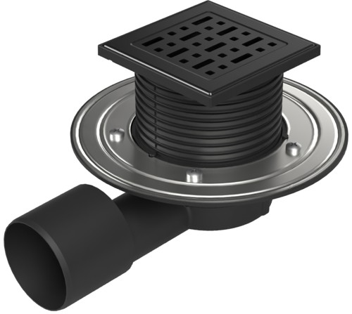 Floor drain with side outlet black D50/75, stainless steel flange, grid FACE black