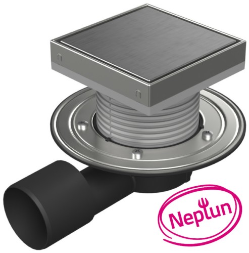 Floor drain with side outlet D50/75, NEPTUN, stainless steel flange, frame, grid STEEL