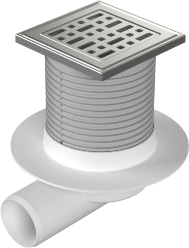 Floor drain with side outlet D50, collar, stainless steel grid FACE