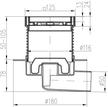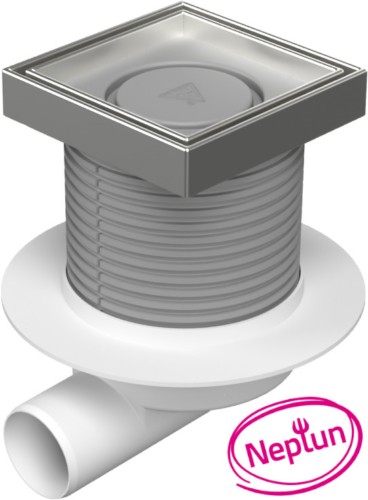 Floor drain with side outlet D50, NEPTUN, collar, stainless steel frame, grid CERAMICS