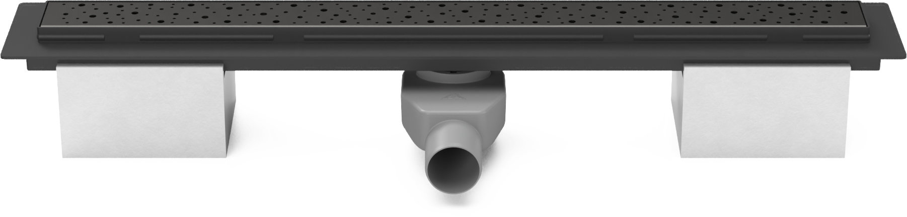 Linear floor drain black 1050mm with side outlet D50 and swivel siphon 360°, Drops grid black