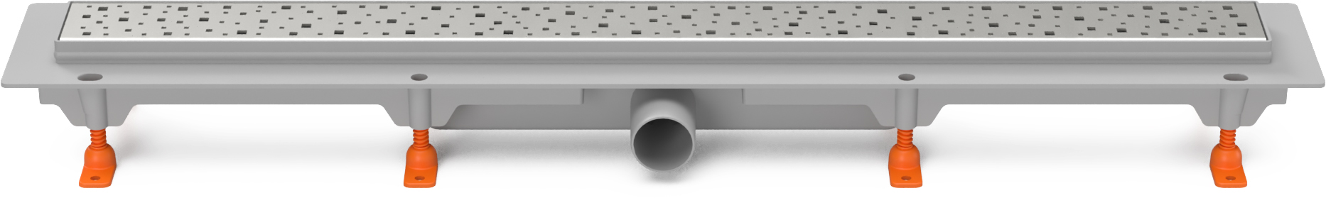Linear. floor drain side outlet, D40, 850 mm, Square grid gloss