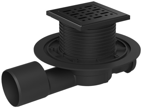 Multi-inlet floor drain black, side outlet D50/75, stainless steel grid FACE black