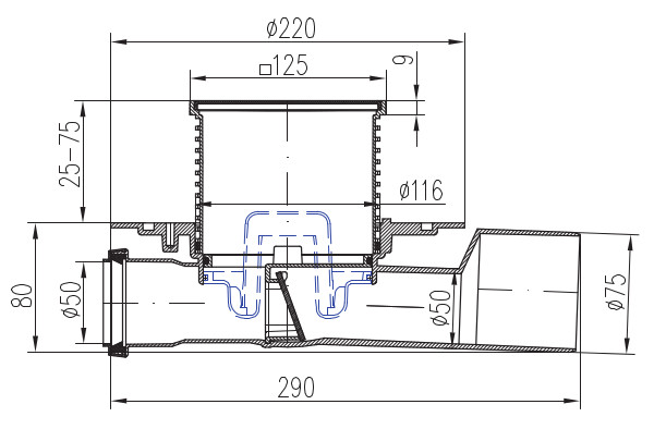 - Waste connection diameter