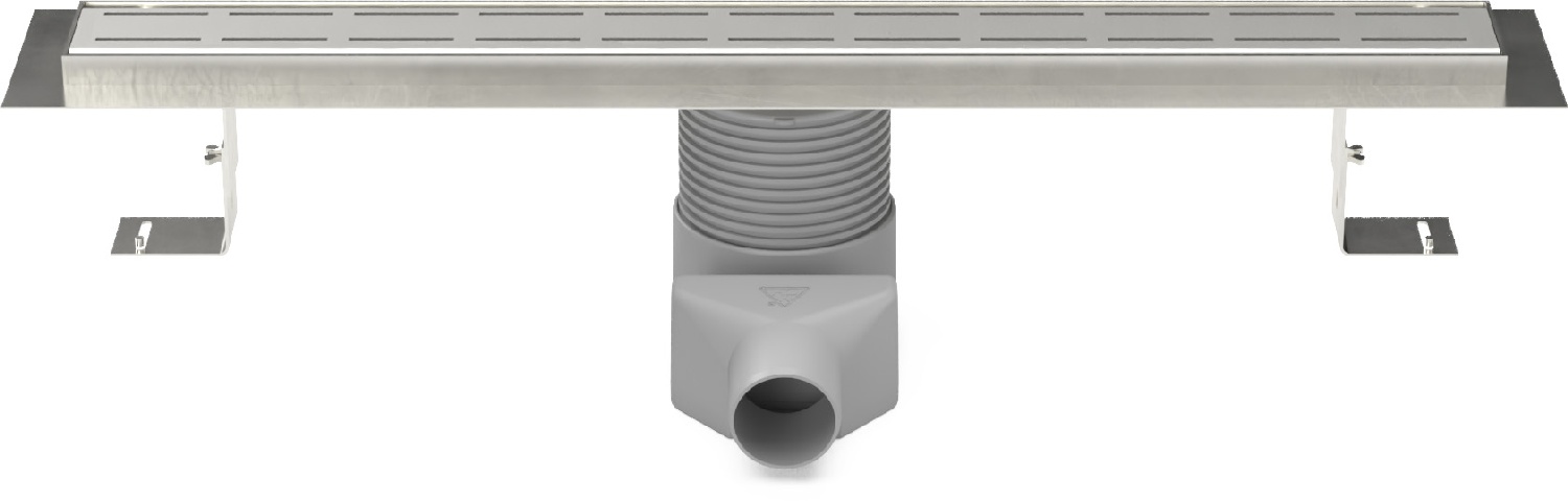 Stainless steel linear floor drain, side outlet D50, plastic siphone, 650mm, Line grid matt