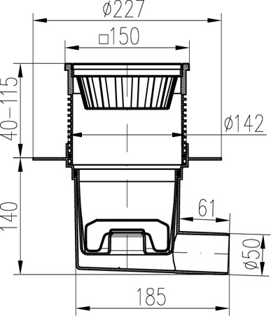 Desagüe lateral D50, NEPTUN, collar, rejilla de hierro fundido