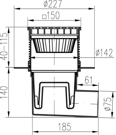 Desagüe lateral D75, nivel de agua, collar, rejilla de hierro fundido
