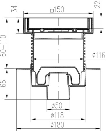 Drenaje de suelo, inferior D50, NEPTUN, collar, estructura de acero inoxidable, rejilla CERAMICS