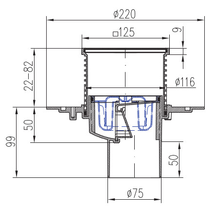 Drenaje de suelo, inferior negro D75, ala de acero inoxidable, rejilla LABYRINTH negro