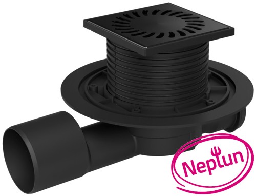 Drenaje de suelo, lateral continuo negro D50/75 NEPTUN, rejilla de acero inoxidable SUN negro