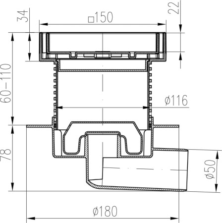 Drenaje de suelo, lateral D50, NEPTUN, collar, estructura de acero inoxidable, rejilla CERAMICS