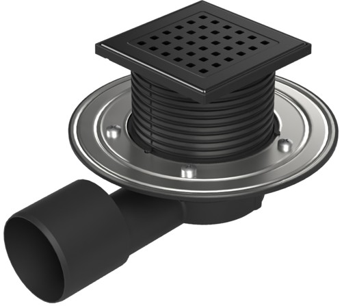 Drenaje de suelo, lateral negro D50/75, ala de acero inoxidable, rejilla GATE negro