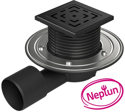 Drenaje de suelo, lateral negro D50/75 NEPTUN, ala de acero inoxidable, rejilla LABYRINTH negro