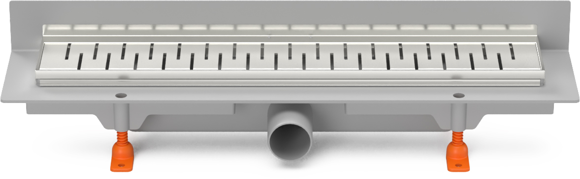 Sumidero lineal de pared con marco de acero inoxidable y desagüe lateral, D40, 350 mm, rejilla Medium brilla
