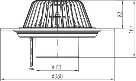 Gravitační střešní vpusť VORTEX D110 s topným kabelem 10W