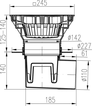 Kanalizační vpusť boční D110-250 suchá klapka, límec, plastová mřížka