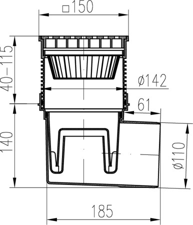 Kanalizační vpusť boční D110, vodní hladina, nerez mřížka