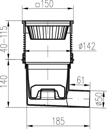 Kanalizační vpusť boční D50, NEPTUN, nerez mřížka