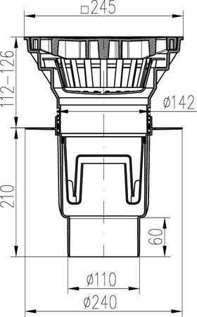 Kanalizační vpusť spodní D110-250 suchá klapka, límec, plastová mřížka