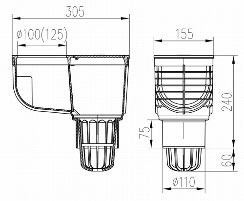 Výrobek je určen pro odvod dešťových (povrchových) vod do kanalizačních systémů vně budov a umožňuje připojení okapových svodů.