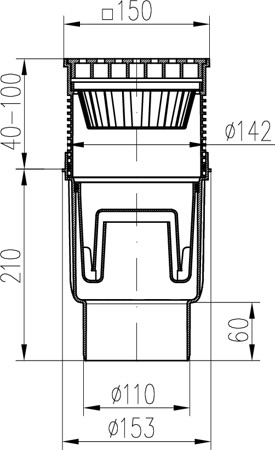 Kanalizační vpusť spodní D110, suchá klapka, litinová mřížka