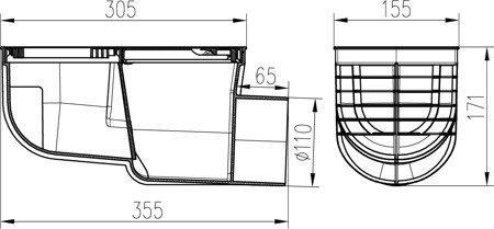 Lapač střešních splavenin boční D110, hranaté víko, šedá