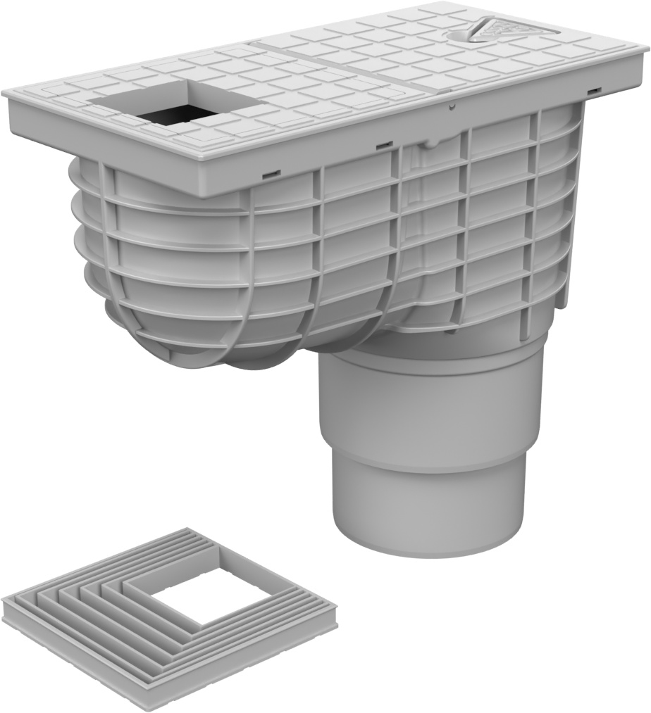 Lapač střešních splavenin spodní D110/D125 šedá, hranaté víko