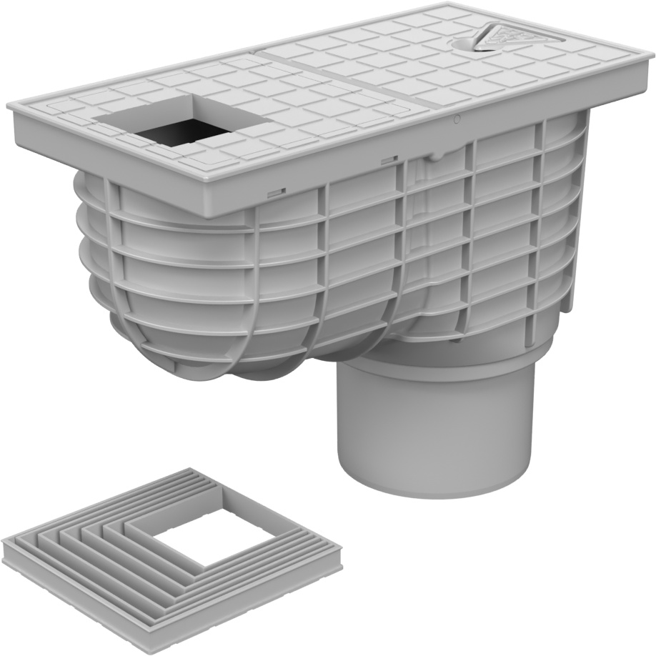 Lapač střešních splavenin spodní D110 šedý, hranaté víko