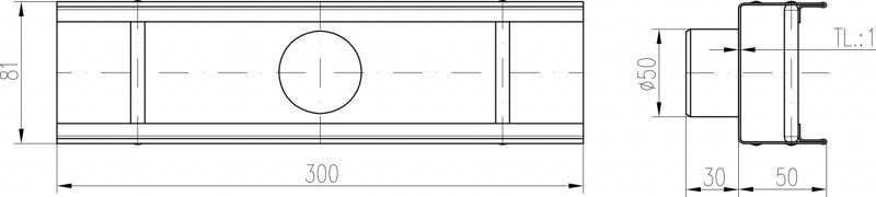 Nerezový odtok venkovního žlabu D50 s mřížkou