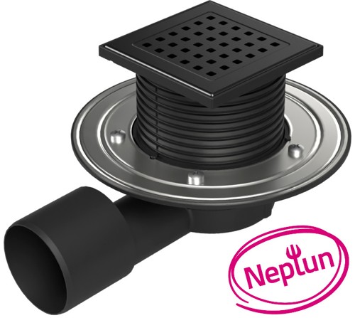 Při poklesu vodní hladiny plovák NEPTUN uzavírá odtok a tím zabraňuje zpětnému pronikání zápachu z kanalizačního potrubí. Vyrobeno z PP, PS a nerezové oceli DIN 1.4301. Zatížení K3-300 kg, odolnost do 70 °C, zkoušeno dle normy EN 1253. Černá nerezová mřížka 1,5 mm je opatřena polyesterovou termosetickou barvou.