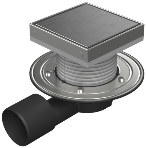 Podlahová vpusť boční D50/75, nerez příruba, rámeček, mřížka STEEL