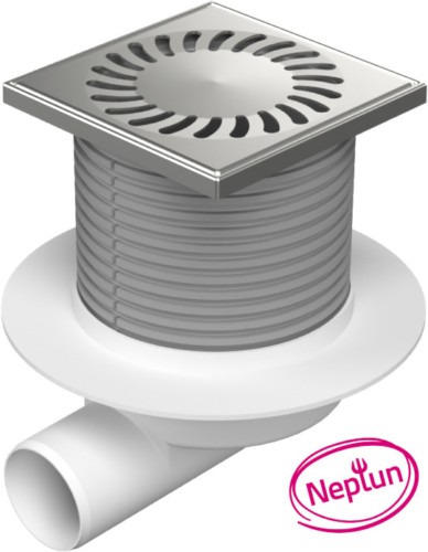 Podlahová vpusť boční D50, NEPTUN, límec, nerez rámeček, mřížka SUN