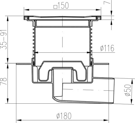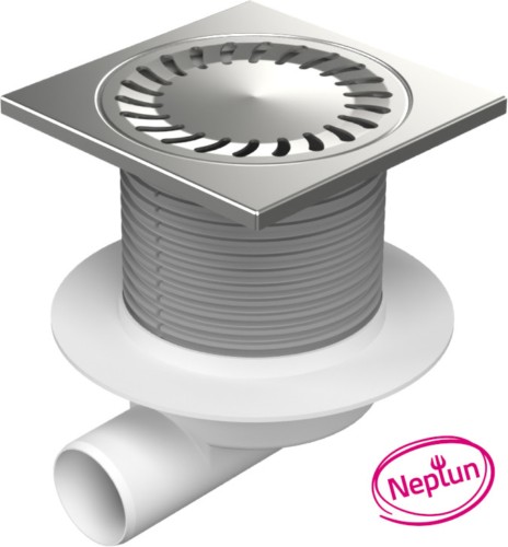 Podlahová vpusť boční D50, NEPTUN, límec, nerez rámeček, mřížka SUN