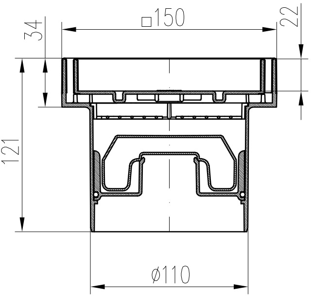 Podlahová vpusť přímá D110, NEPTUN, nerez rámeček, mřížka STEEL