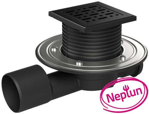 Při poklesu vodní hladiny plovák NEPTUN uzavírá odtok a tím zabraňuje zpětnému pronikání zápachu z kanalizačního potrubí. Vyrobeno z PP, PS a nerezové oceli DIN 1.4301. Zatížení K3-300 kg, odolnost do 70 °C, zkoušeno dle normy EN 1253. Černá nerezová mřížka 1,5 mm je opatřena polyesterovou termosetickou barvou.