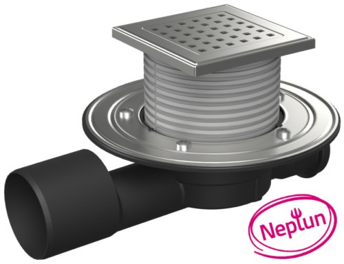 Podlahová vpusť průběžná D50/75 NEPTUN, nerez příruba, rámeček, mřížka GATE