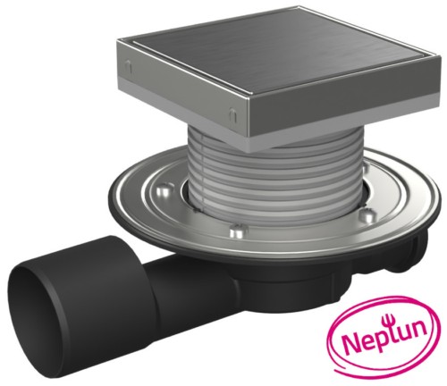Podlahová vpusť průběžná D50/75 NEPTUN, nerez příruba, rámeček, mřížka STEEL