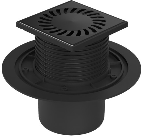 Vpusť je určena pro vnitřní a venkovní použití. Obsahuje suchou klapku a vodní hladinu. Vyrobeno z PP, PS a nerezové oceli DIN 1.4301. Zatížení K3-300kg, odolnost do 90°C, zkoušeno dle normy EN 1253. Černá nerezová mřížka 1,5 mm je opatřena polyesterovou termosetickou barvou.