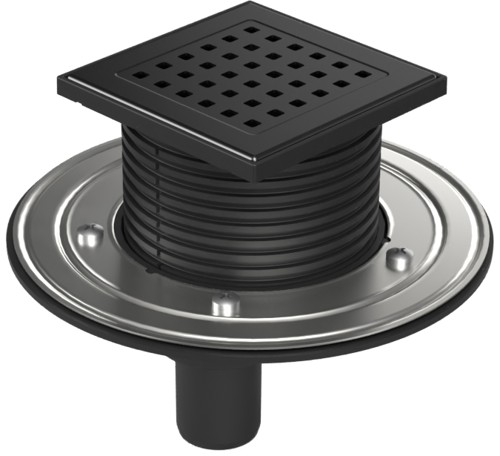 Podlahová vpusť spodní černá D40, nerez příruba, mřížka GATE černá
