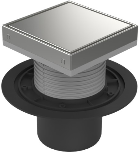 Podlahová vpusť spodní D110, nerez rámeček, mřížka STEEL