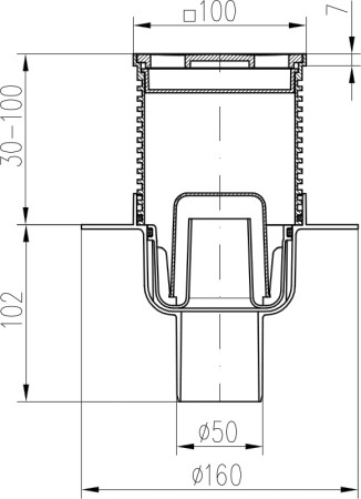 Vyrábí se s plastovým nebo nerezovým rámečkem. Límec vpusti lze použít pro napojení hydroizolační nebo bitumenové fólie. Vyrobeno z PP a nerezové oceli DIN 1.4301. Zatížení K3-300 kg, odolnost do 90°C, zkoušeno dle normy EN 1253.