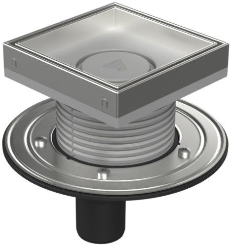 Podlahová vpusť spodní D50, nerez příruba, rámeček, mřížka CERAMICS