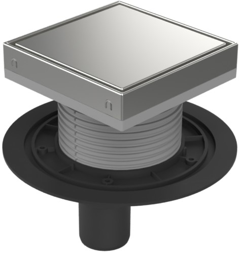 Podlahová vpusť spodní D50, nerez rámeček, mřížka STEEL