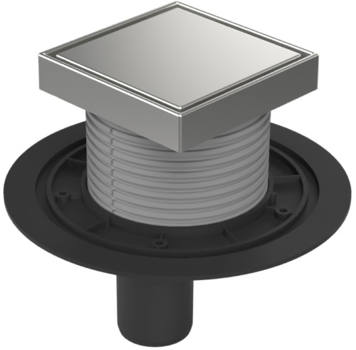 Podlahová vpusť spodní D50, nerez rámeček, mřížka STEEL